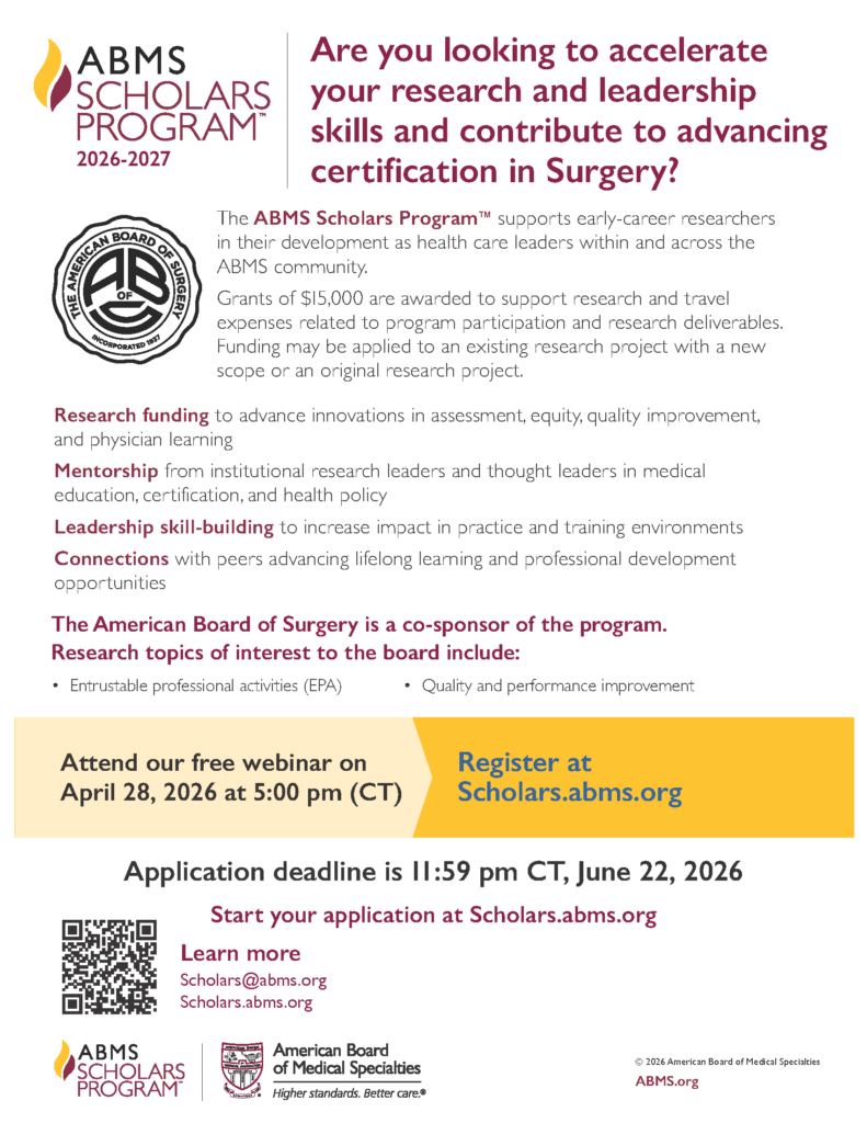 The ABS is proud to be a member board co-sponsor of the American Board of Medical Specialties (ABMS) Scholars Program™.